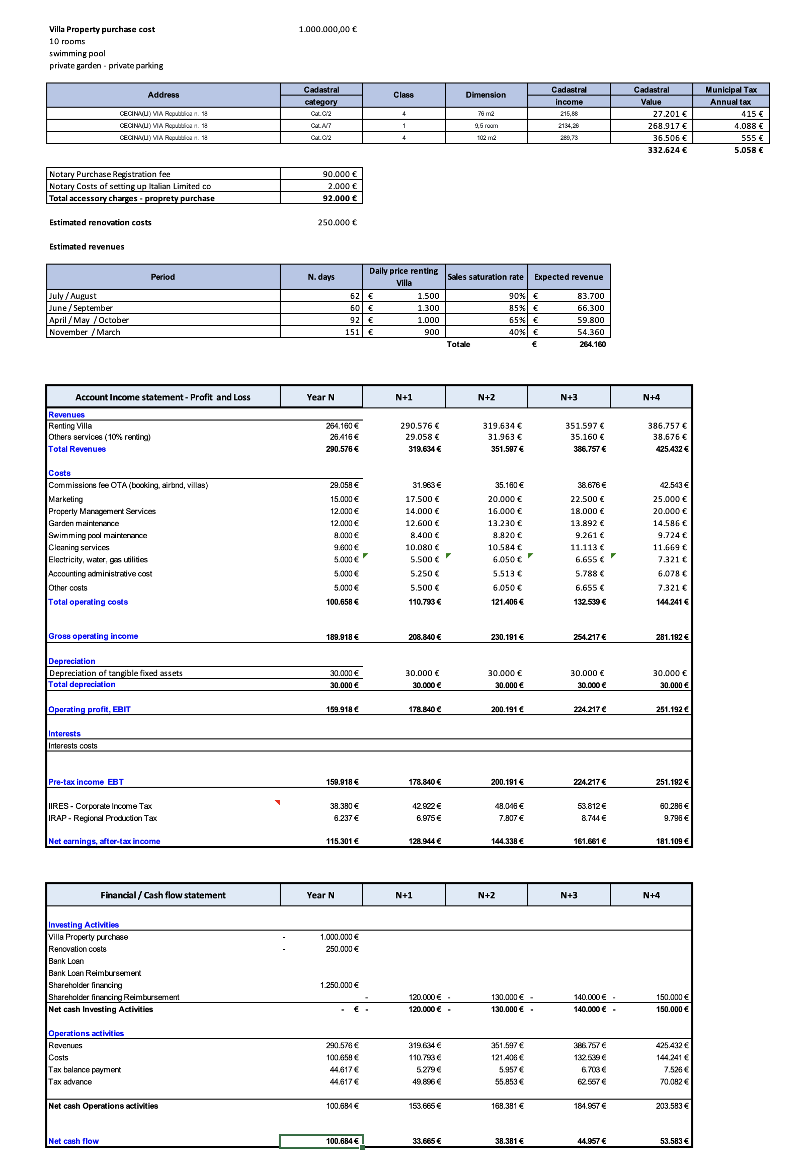 Attività di Supporto per la Redazione e Valutazione di Business Plan relativi alla Costituzione di Società s.r.l. per l’acquisto di immobili da destinare ad Attività Turistico / Ricettive